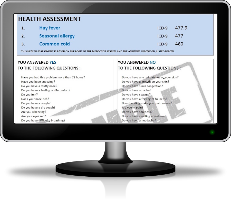 Our mission is to empower you to help yourself determine your health problems. The MEDoctor Symptom Checker won't replace a medical visit to your doctor to have the final diagnosis and the correct treatment, but will be useful to identify which pain, disease or illness can correspond to the symptoms you have. The MEDoctor Symptom Checker is a guide that will help you for all kinds of problems, for a benign disease as a cold or something more serious as a cancer. MEDoctor is indeed one of the world's most advanced symptom checkers. And it is the only patented symptom checker on the Web.